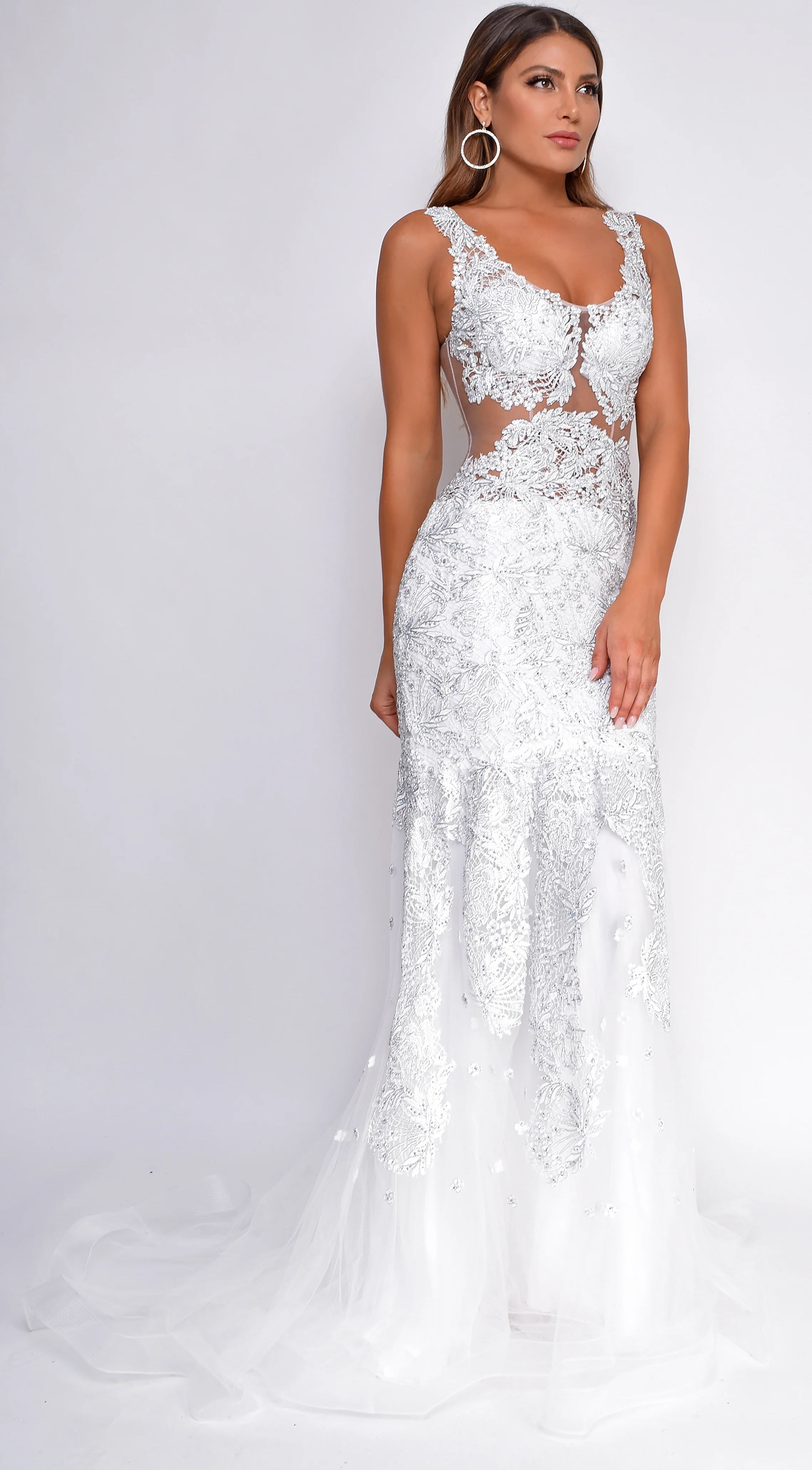 - Floor length sheer mermaid skirt
