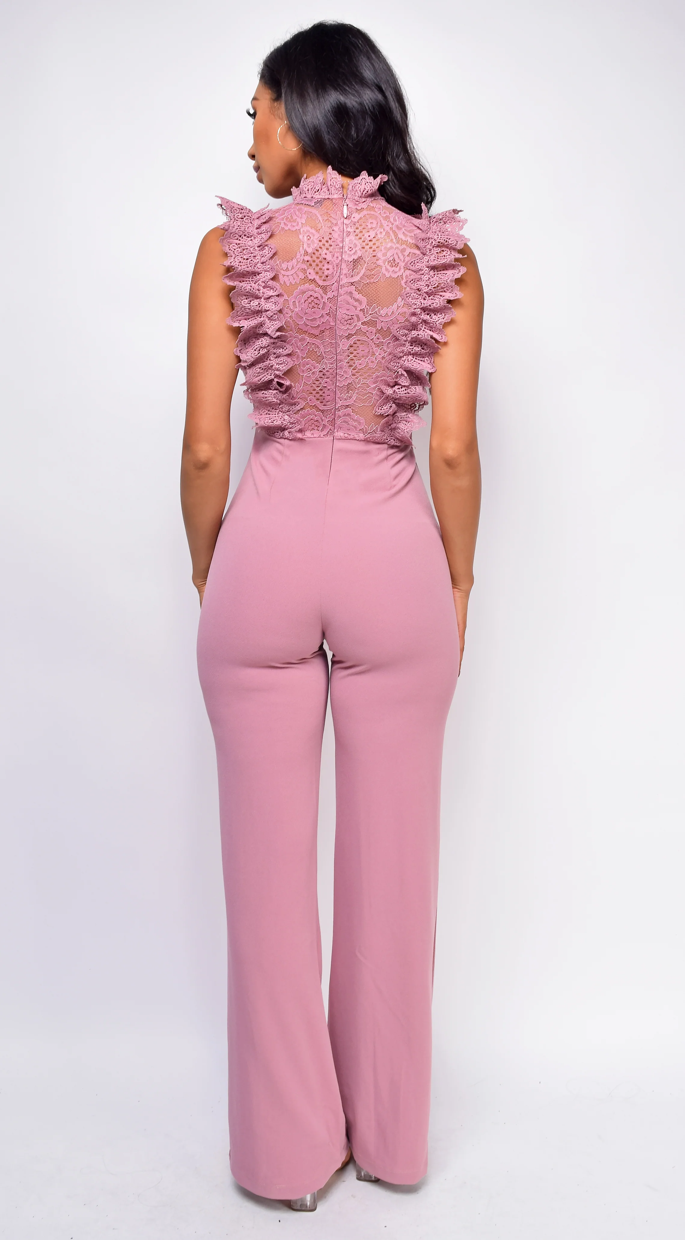Vanna Crochet Flared leg Jumpsuit - Mauve Pink